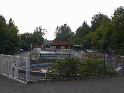 Kläranlageneingang Nord im Vordergrund das Nachklärbecken